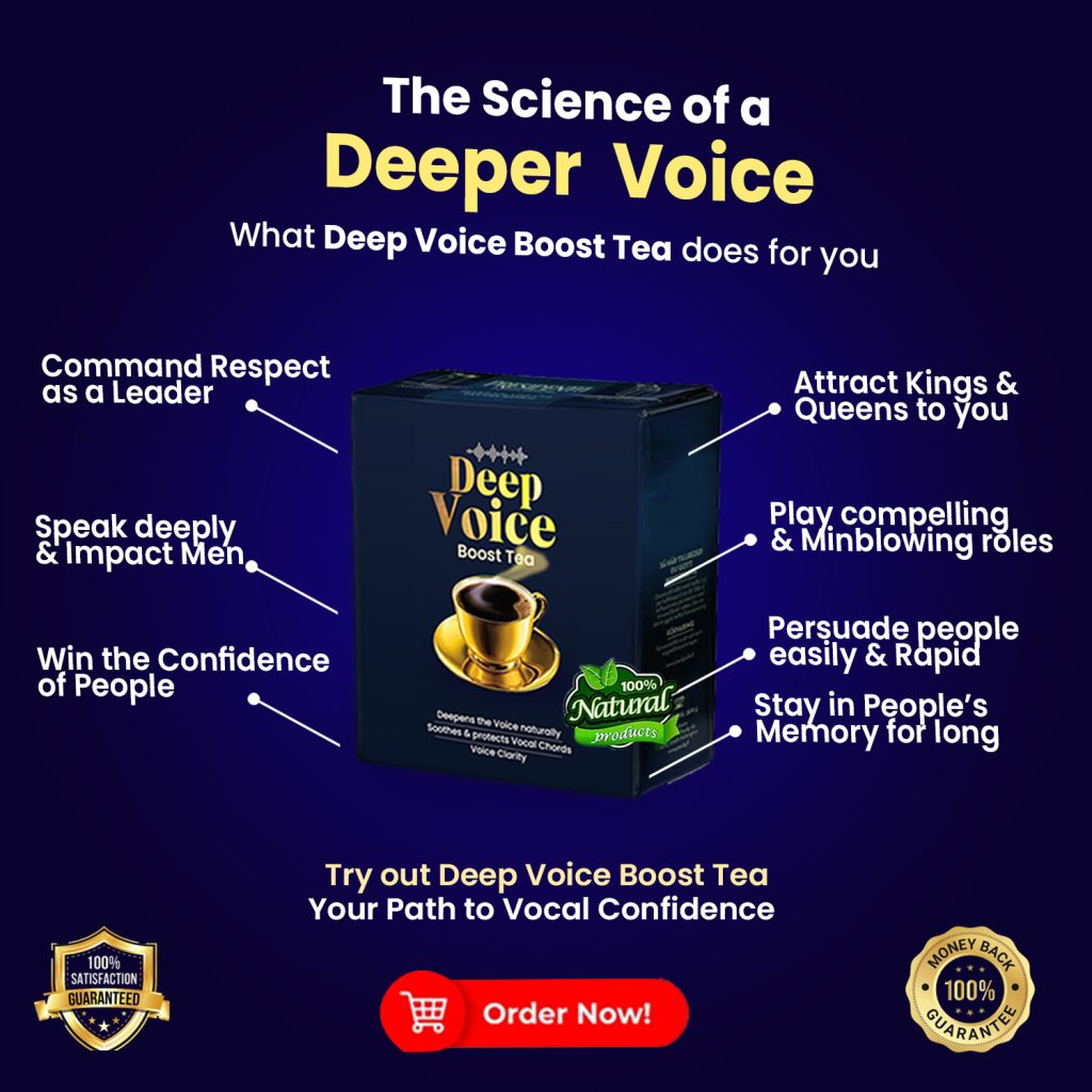 In many African cultures, a deep voice commands respect. It’s the voice of leadership, wisdom, and strength. Now, you can cultivate that voice with Deep Voice Tea.