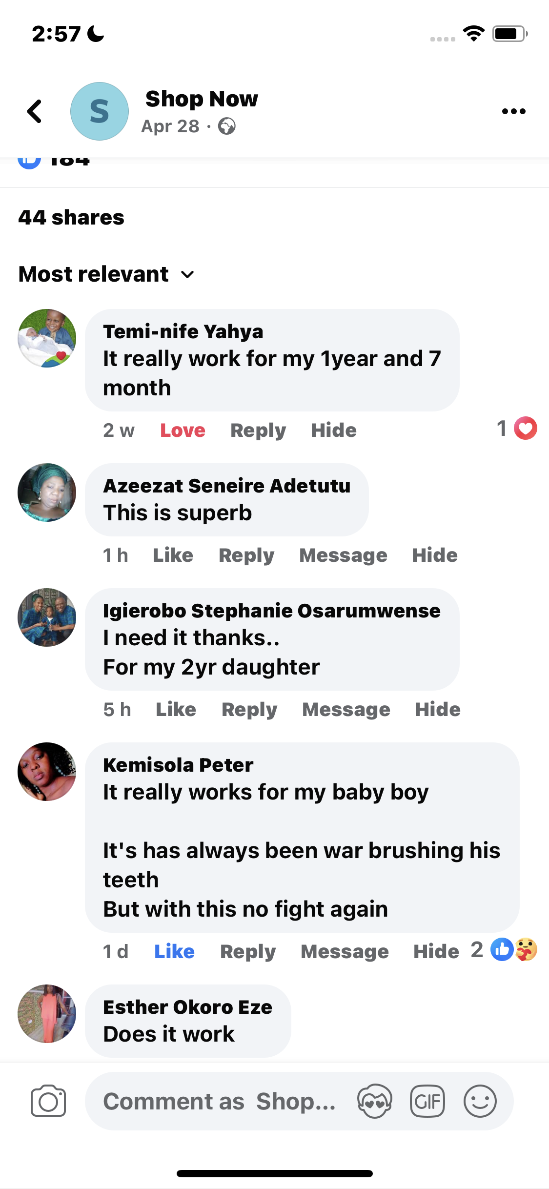 ”Before we had to fight with our two year to brush her teeth, now she’s always asking to brush her teeth. It fits into her mouth just right and be able to brush her teeth on her own. Amazing product for kids. Highly recommeded” MRS SHOLA