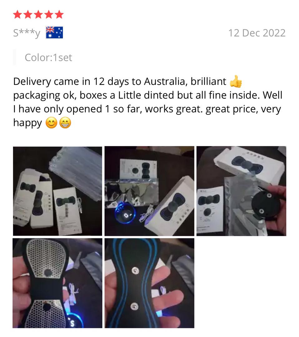 Has 7 user-friendly pre-programmed massage modes which makes it much easier to use than other traditional electric therapy products. The massage modes provide precise control to relieve muscle pain and alleviate body soreness. Suitable for use anywhere & for everyone.